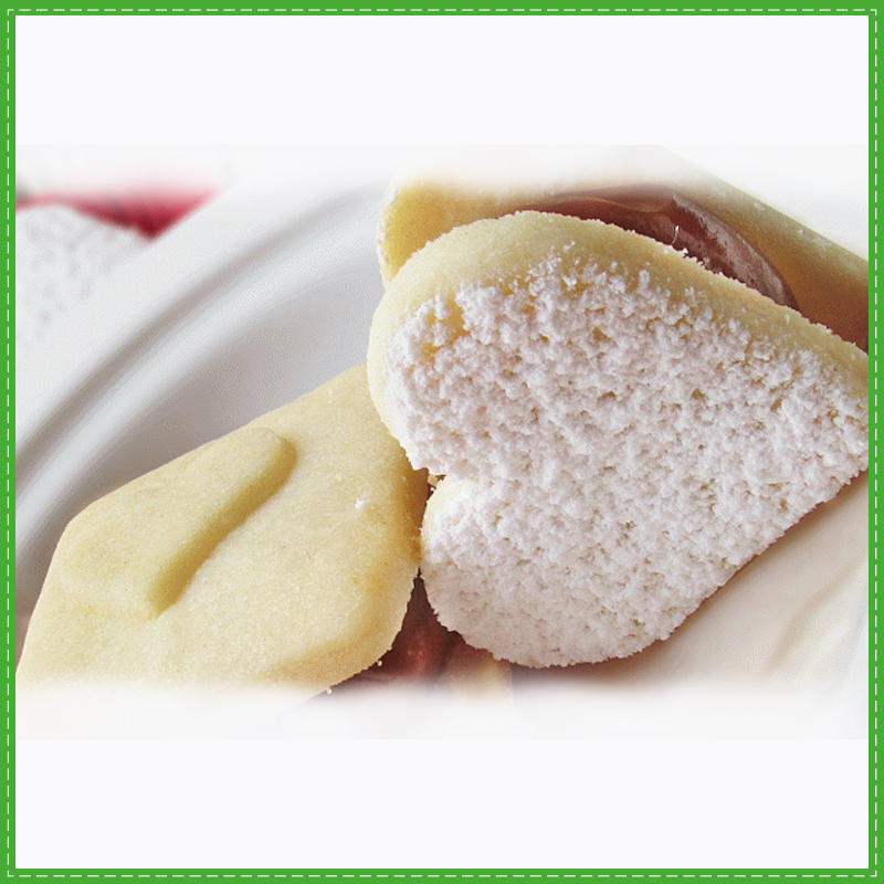 Galletitas de harina y maicena, rellenas de manjar blanco y espolvoreado con azúcar impalpable.