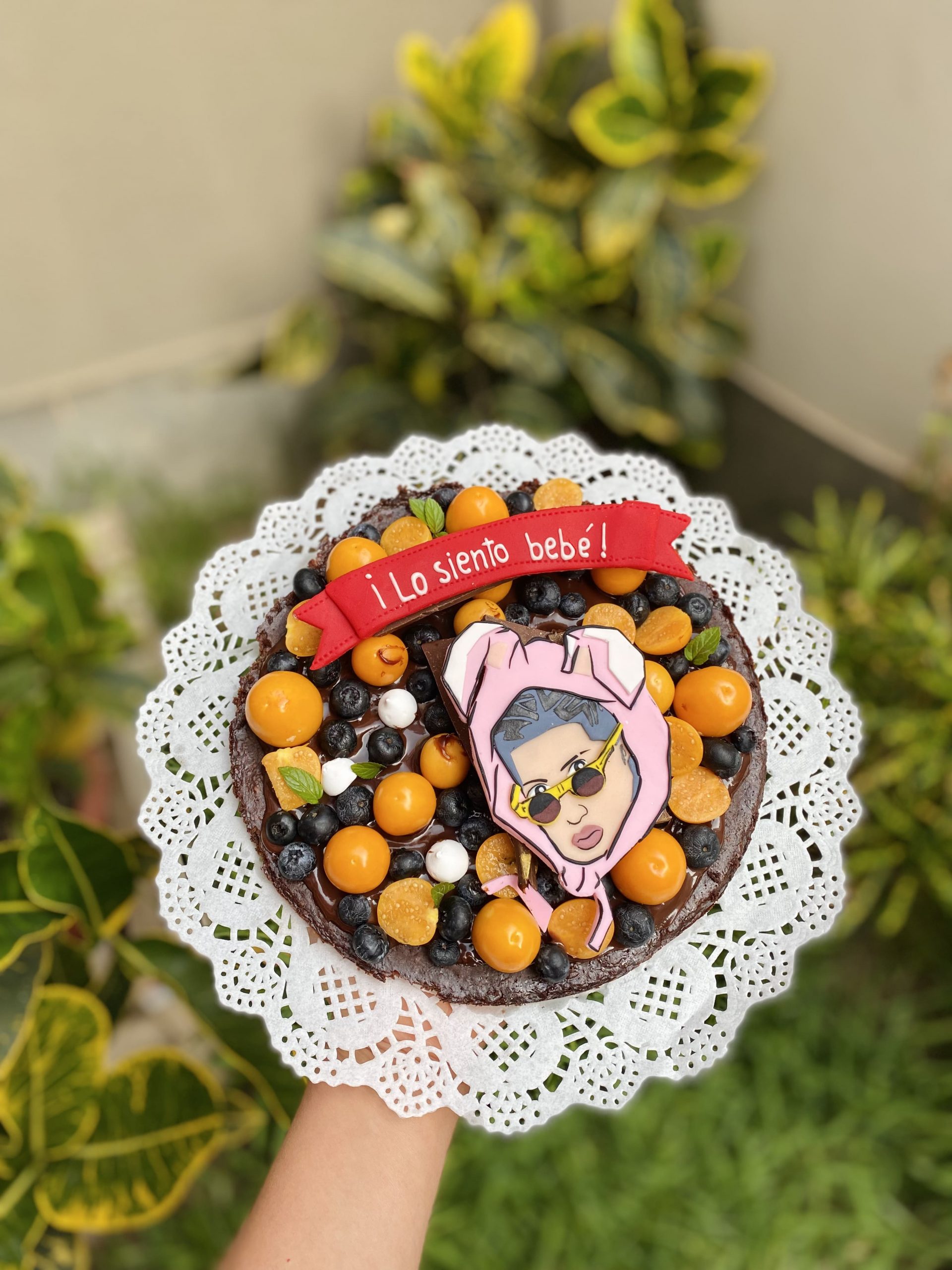 *En ambas presentaciones viene con una dedicatoria circular art铆stica de masa fondant y merenguitos (a base de az煤car)