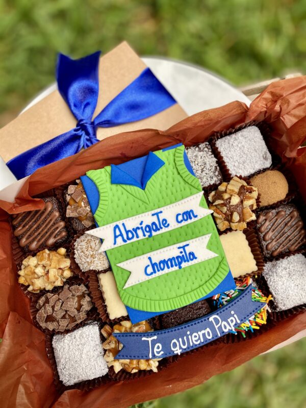 – 5 brownies especiales; fudge con chispas, fudge con coco, sanguchito fudge, manjar con trocitos de chocolate y manjar con pecanas