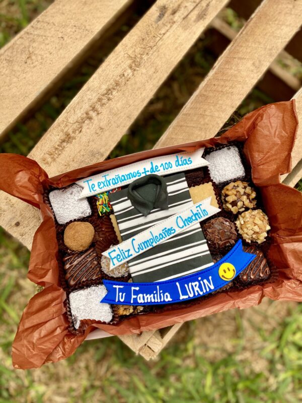 – 6 brownies clásicos; de rayitas y azúcar impalpable