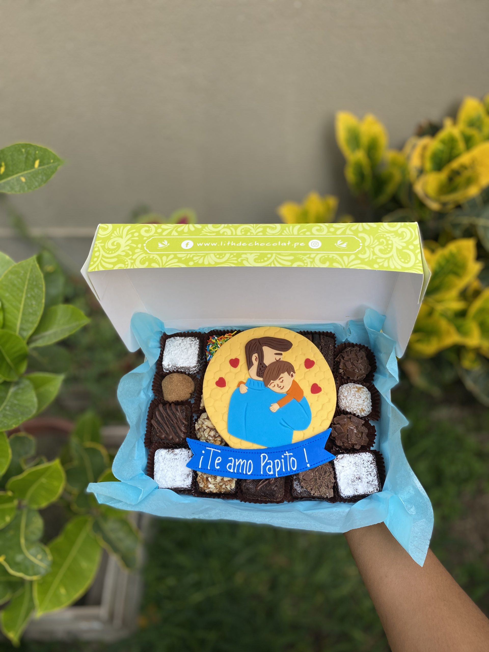 Cajita de diseño 🎁 con 20 postrecitos 😋 100% caseros y combinados entre alfajorcitos, brownies y trufas bañadas en canela, pecanas, coco y más !