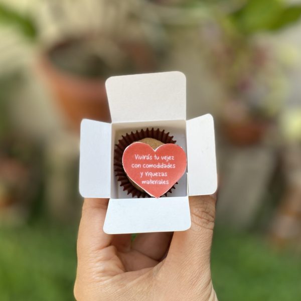 Pero eso no es todo, ¡nuestras cajitas de Corazón de Dulzura también incluyen un corazón comestible de papel de arroz con un mensaje personalizado!
