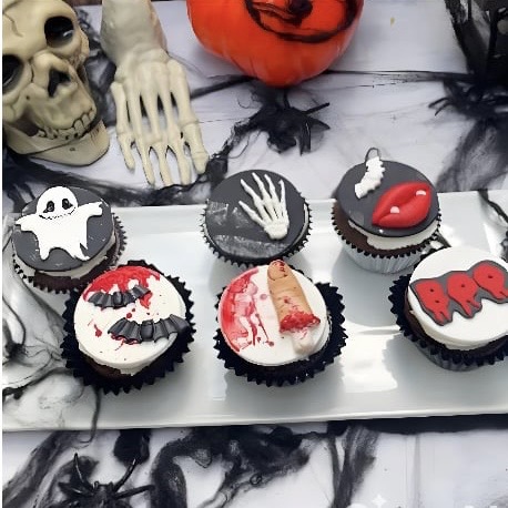 Añade un toque escalofriante pero encantador a cualquier celebración con nuestro Pack “Bocados Monstruosos”. Este set incluye 6 cupcakes deliciosos en dos sabores irresistibles: vainilla y chocolate. Cada cupcake está decorado con un diseño especial de Halloween en fondant, ¡listo para causar escalofríos y sonrisas!