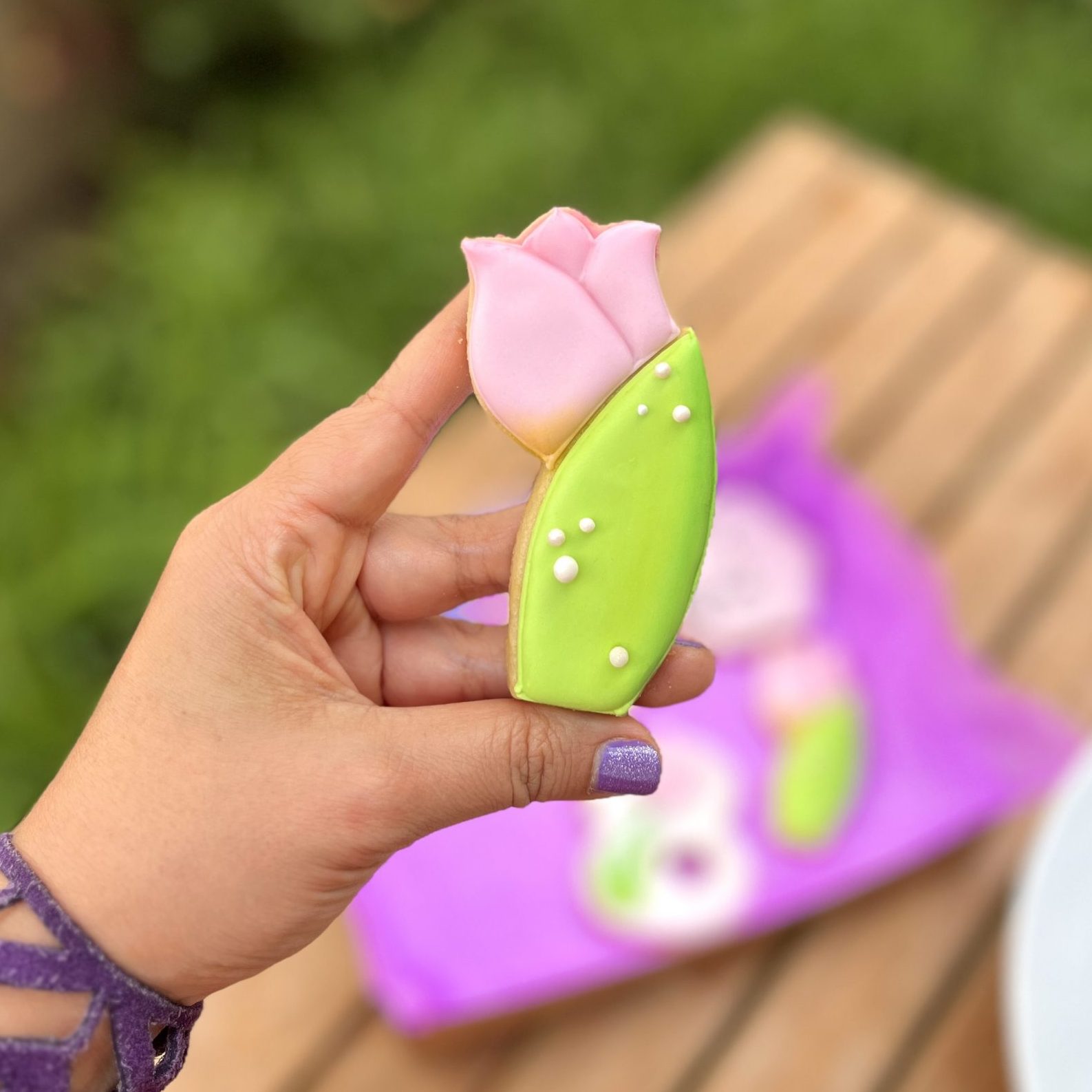 – 2 galletas con forma de tulipanes, símbolo de elegancia y resiliencia, que representan el crecimiento y la transformación personal.