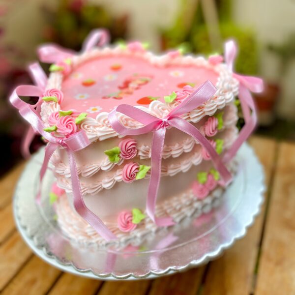 ¡Descubre la última tendencia en repostería con nuestra exclusiva Torta Coquette! Esta torta está cubierta con nuestra delicioso buttercream (a base de chocolate blanco) color rosado. Adornada con encantadores detalles románticos y los populares lazitos, es la elección ideal para quienes aprecian el estilo y la sofisticación.