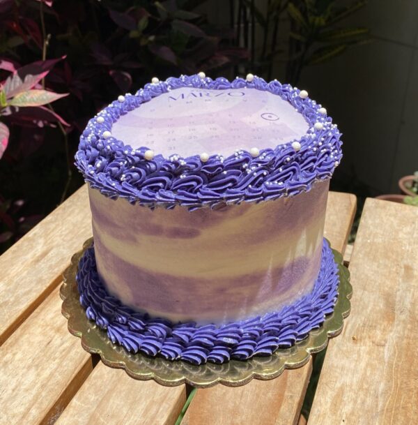 - Decoración: Buttercream morado y blanco, con chispitas en tonos femeninos