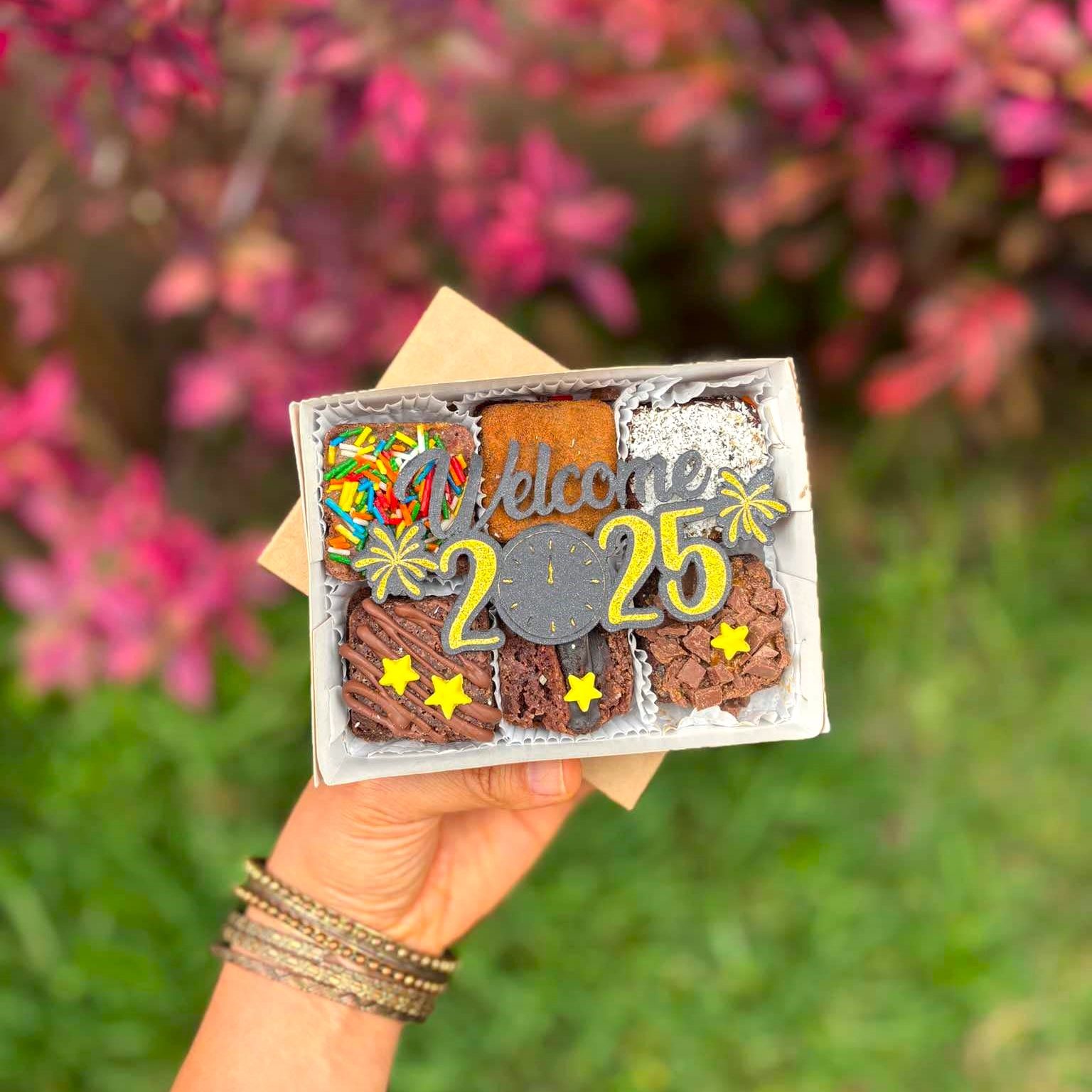 Celebra el Año Nuevo con un toque dulce y sofisticado. Este set de 6 mini brownies combina los sabores clásicos del chocolate con toppings irresistibles, perfectos para compartir en estas fechas especiales.