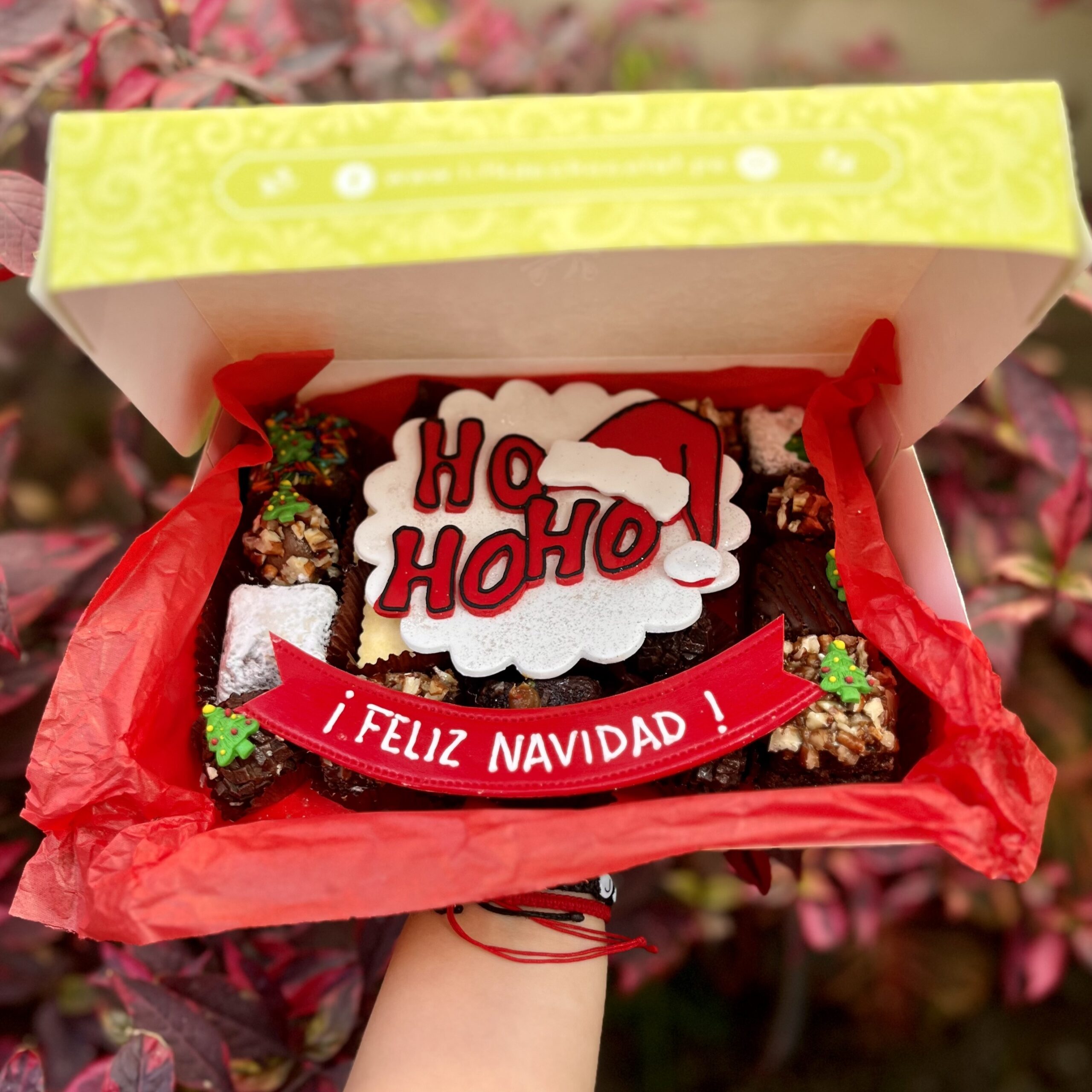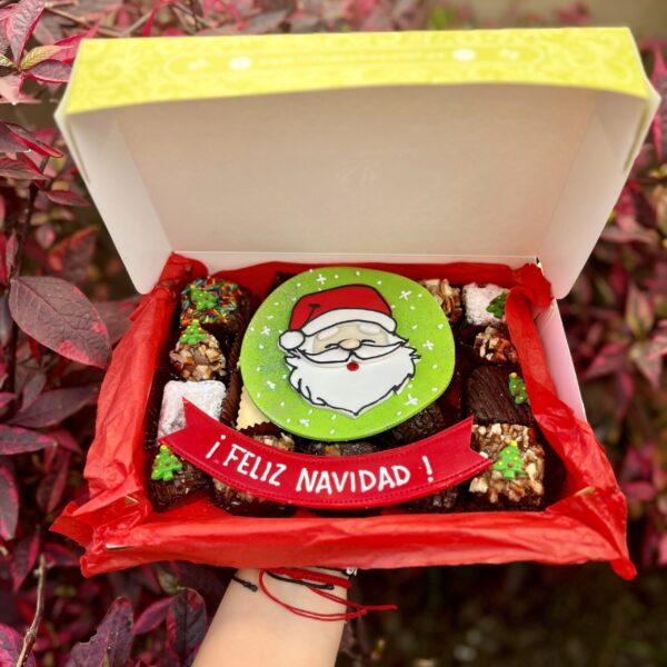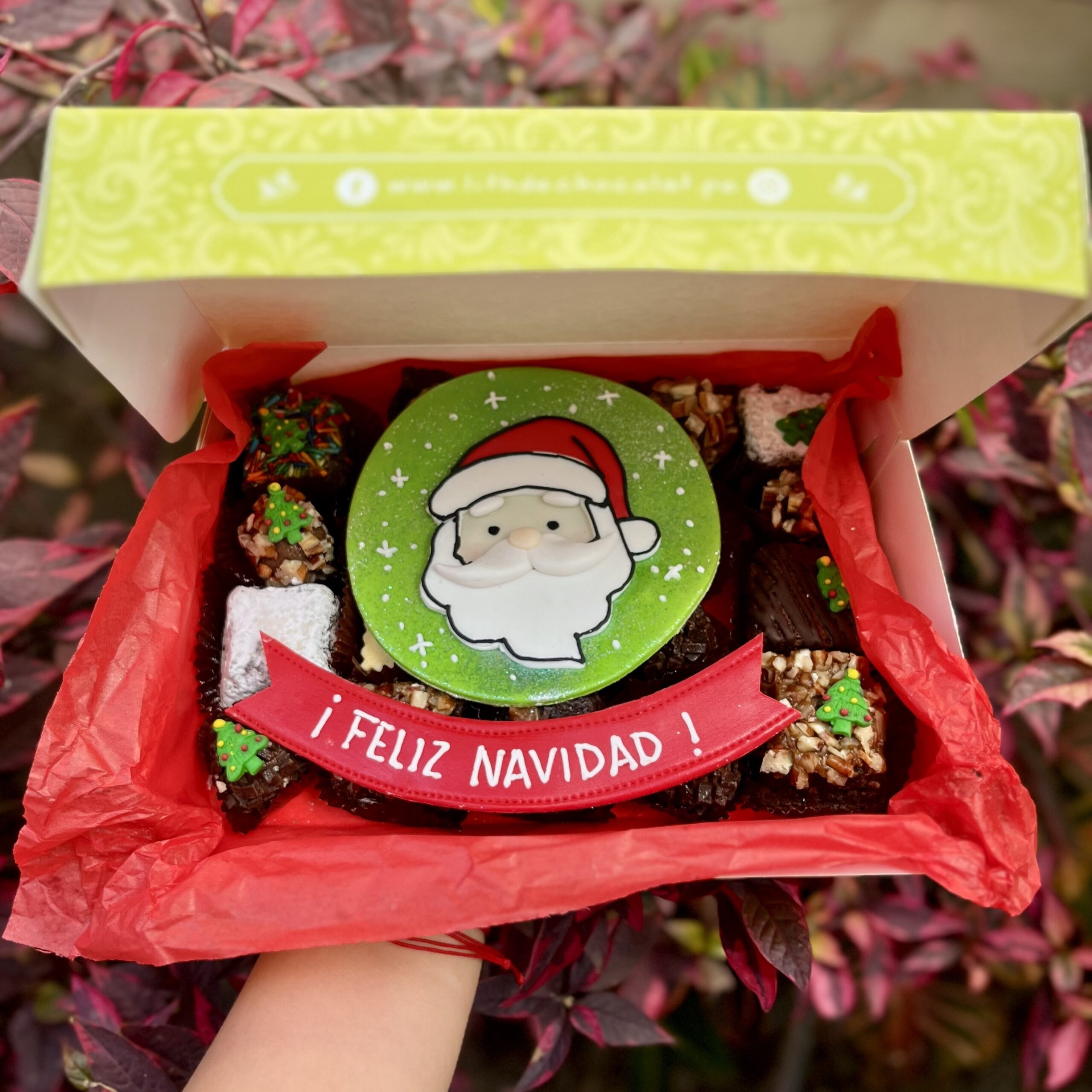 Nuestra Mix Box Navideña reúne 20 postrecitos irresistibles: trufas, alfajores y brownies, decorados con amor y con un toque festivo de Santa Claus en fondant.