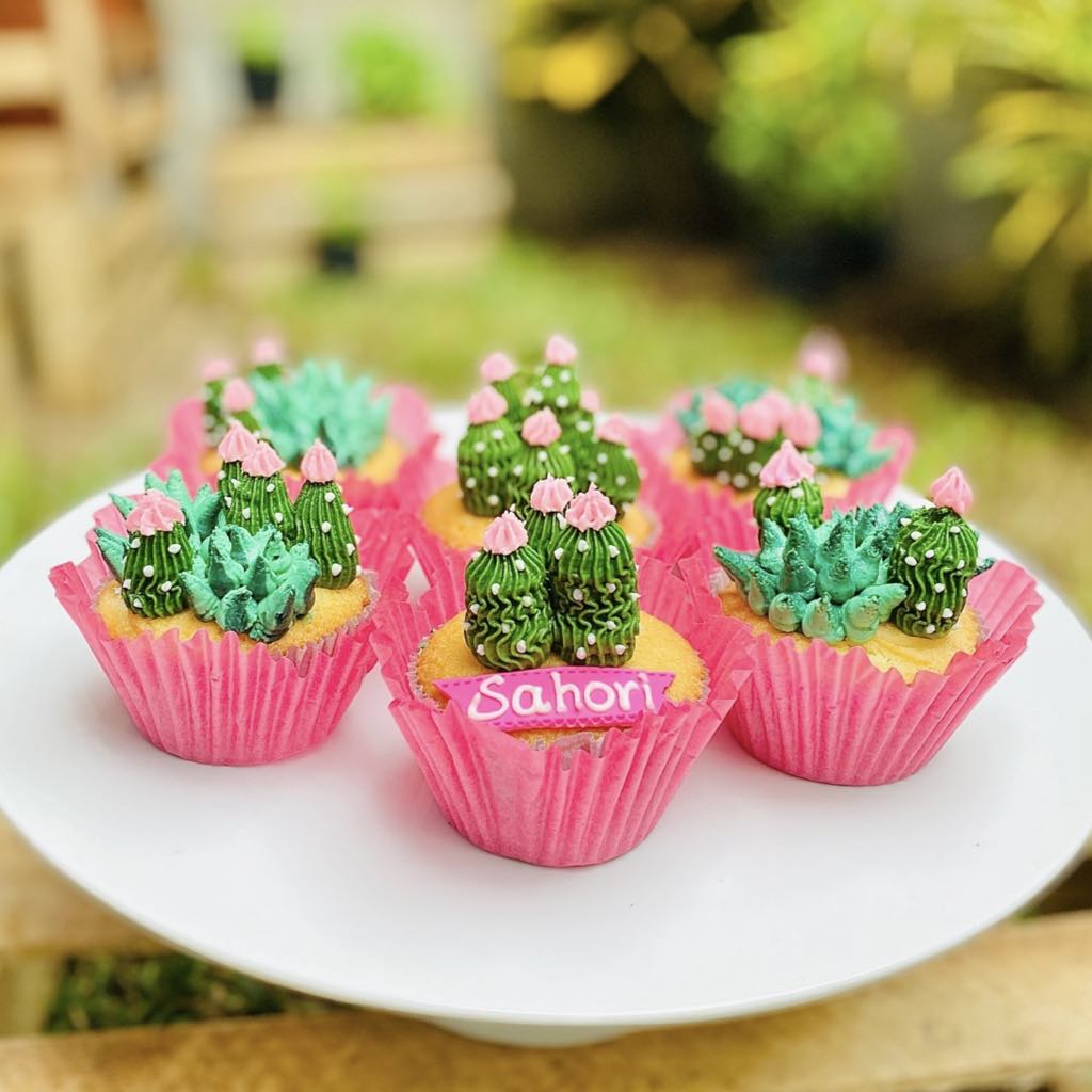 Decoración: Buttercream en tonos verdes con cactus y flores