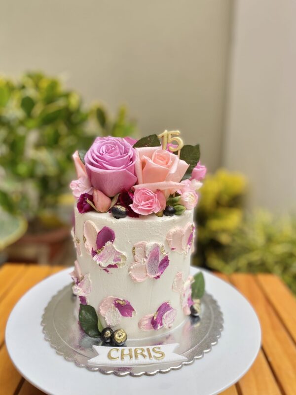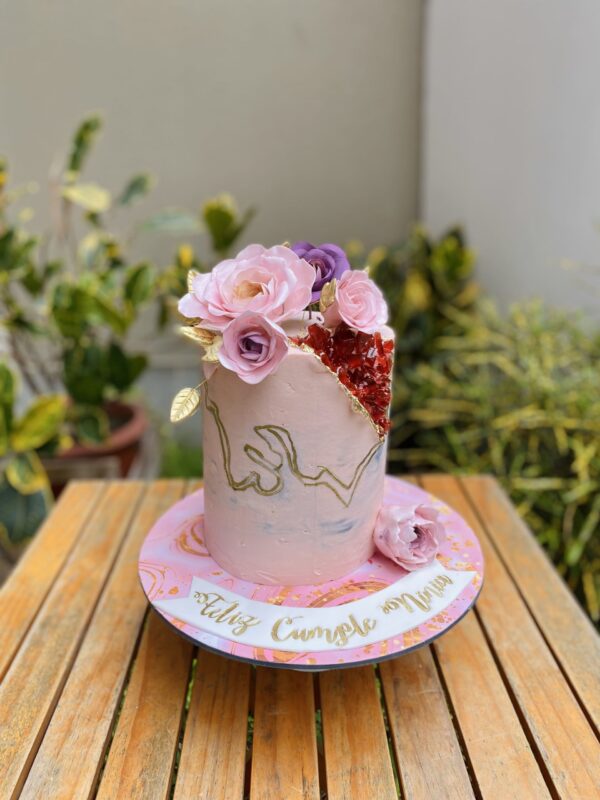 TORTA CON FLORES NATURALES